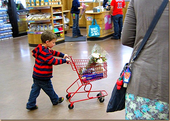 This would be Little Guy doing some shopping at Trader Joe’s. Very selective he is.