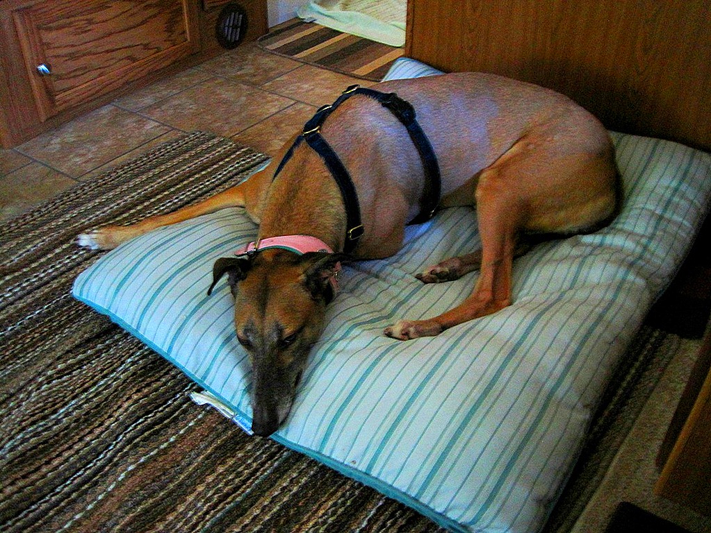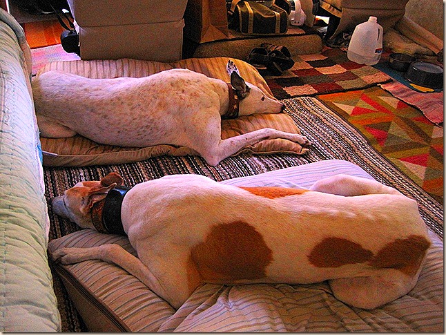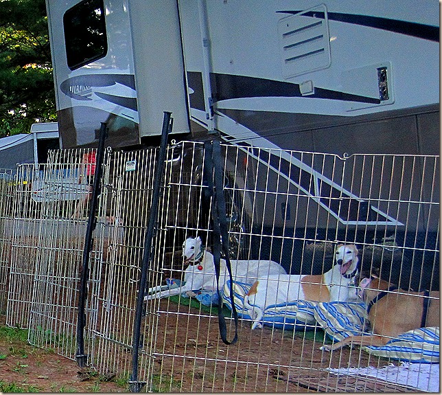 The weather was very hot and Renner, Ruby and Mandy wanted to stay inside the air conditioned camper.