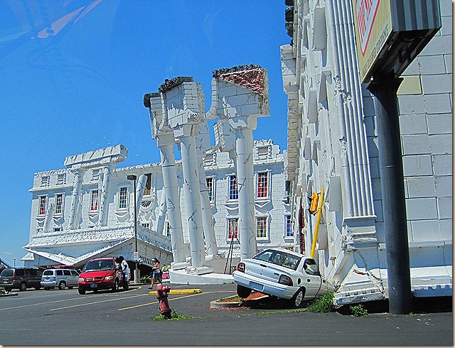 Drove past this…attraction. Look closely. A bit peculiar. I ‘think’ it is a mystery place…fun house kind of thing. Not sure what it is but it looked interesting so I snapped a photo or two of it.