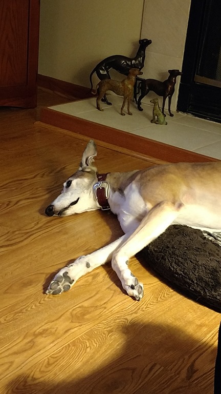 I turned 9 years old the 1st of January 2017 and am still going strong. This photo is of me listening because I really only ever listen with one ear at a time. I still run like the wind, especially when there is a turkey in my yard…or even an imaginary turkey. One time a turkey was waaayyy at the back of the yard and I ran to catch it. It flew off before I could get there but the smells were still fresh. So now it is the first thing I do…as the door opens I bolt out to get that turkey whether it is there or not! I run around a little and then sniff a little. I don’t usually run again until Mom says ‘Mandy Come…Mandy Come…Mandy Treat (I know if I wait until the third time she will use ‘treat’ as a bribe…and Mom never lies to me so I know there will be a treat).
